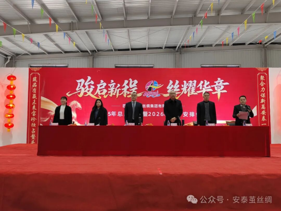 隨后,安泰繭絲綢集團(tuán)總經(jīng)理秦?zé)鰧?025年的工作進(jìn)行了總結(jié)并對2026年的主要任務(wù)進(jìn)行了安排部署:公司圍繞“打造國際高端繭絲綢產(chǎn)品智造基地”總目標(biāo),按照董事長及總公司部署,以“保生產(chǎn)、保運轉(zhuǎn)、擴(kuò)產(chǎn)能、化風(fēng)險、提品牌、增利潤”為重點,聚焦提升“國際高端繭絲綢產(chǎn)品智造基地”的目標(biāo),專業(yè)專注,守正創(chuàng)新,做到“以銷定采(采購)-以采定產(chǎn)(生產(chǎn))-以產(chǎn)定銷(銷售)”閉環(huán)。凝心聚力、真抓實干,全力以赴完成各項目標(biāo)任務(wù),推動公司發(fā)展再上新臺階。