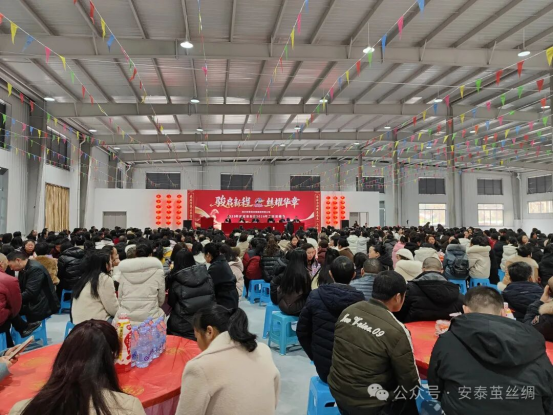 2026年2月13日,四川安泰繭絲綢集團(tuán)有限公司2025年總結(jié)表彰暨2026年工作安排會在安泰繭絲綢蠶繭初加工中心內(nèi)隆重舉行。參加會議的有世紀(jì)安泰集團(tuán)總裁陳善東、世紀(jì)安泰集團(tuán)絲綢事業(yè)部主管林媛媛、繭絲綢集團(tuán)公司機(jī)關(guān)全體、絲業(yè)生產(chǎn)中心、綢業(yè)生產(chǎn)中心、武勝蠶業(yè)公司所有人員、廣安蠶業(yè)和夾江蠶業(yè)機(jī)關(guān)人員,所有先進(jìn)個人和先進(jìn)集體負(fù)責(zé)人,蠶桑基地業(yè)主以及酒店、房產(chǎn)、物業(yè)、建筑等板塊公司領(lǐng)導(dǎo)共計600人。會議由營銷總監(jiān)陳林主持。
