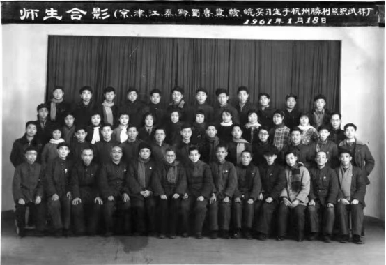 1961年1月18日,赴南方實習結束時師生在杭州勝利絲織試樣廠合影