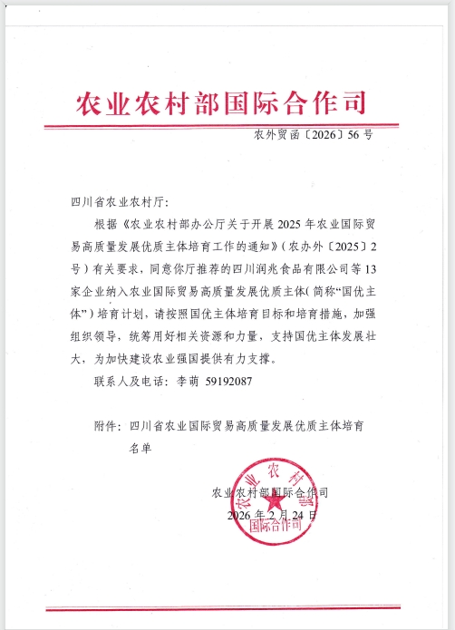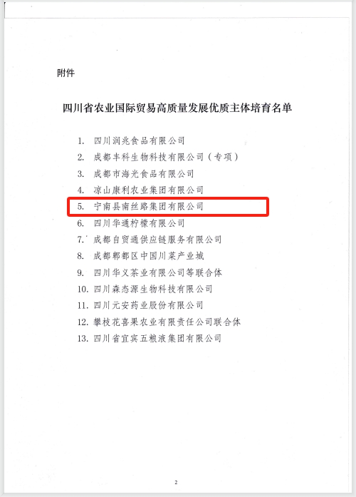 近日,農(nóng)業(yè)農(nóng)村部國際合作司復函四川省農(nóng)業(yè)農(nóng)村廳,依據(jù)《農(nóng)業(yè)農(nóng)村部辦公廳關(guān)于開展2025年農(nóng)業(yè)國際貿(mào)易高質(zhì)量發(fā)展優(yōu)質(zhì)主體培育工作的通知》(農(nóng)辦外〔2025〕2號)有關(guān)要求,同意四川省13家企業(yè)納入農(nóng)業(yè)國際貿(mào)易高質(zhì)量發(fā)展優(yōu)質(zhì)主體(簡稱“國優(yōu)主體”)培育計劃,寧南縣南絲路集團有限公司成功入選,標志著寧南蠶桑產(chǎn)業(yè)的國際化發(fā)展邁入國家級培育新征程。