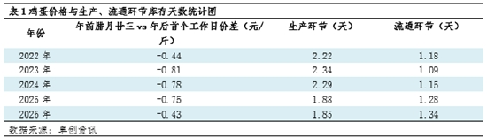 從庫存端來看,春節(jié)期間生產(chǎn)環(huán)節(jié)平均庫存天數(shù)為1.85天,降至近五年最低水平。生產(chǎn)環(huán)節(jié)庫存創(chuàng)下新低,根源在于養(yǎng)殖戶的理性操作。經(jīng)歷了過去數(shù)年春節(jié)后價格大跌的教訓(xùn),養(yǎng)殖端在節(jié)前普遍采取了更加徹底的清庫策略,部分產(chǎn)區(qū)甚至出現(xiàn)超淘老雞的現(xiàn)象,使得節(jié)前庫存就已壓至低位;加之飼料成本持續(xù)偏高,養(yǎng)殖戶挺價意愿強烈,不愿在節(jié)后低價出售,進(jìn)一步限制了生產(chǎn)環(huán)節(jié)的庫存積壓。