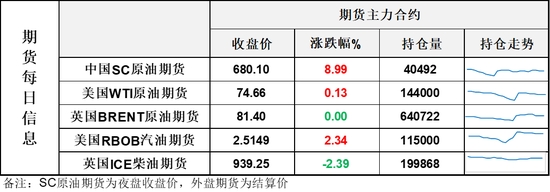 【1】WTI主力原油期貨收漲0.1美元,漲幅0.13%,報(bào)74.66美元/桶;布倫特主力原油期貨收跌0美元,跌幅0%,報(bào)81.4美元/桶;INE原油期貨收漲8.99%,報(bào)680.1元。
