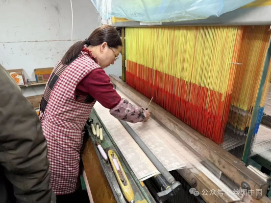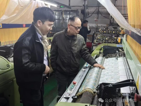 3月3日,中紡協絲專委一行赴毛明山宋錦工坊考察,親眼見證了傳統(tǒng)宋錦織造技藝在當代的煥新演繹。從提花機的精密運轉到錦緞的流光溢彩,古老的絲綢基因與現代工業(yè)美學在此深度融合,織就出一幅幅“多重幻彩”的時代畫卷。