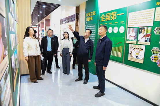 調(diào)研開始,卿軍帶領(lǐng)調(diào)研組參觀了科研成果展示館,詳細介紹了近年來廣西蠶業(yè)技術(shù)推廣站在蠶桑種質(zhì)資源保護、優(yōu)良品種選育、種養(yǎng)技術(shù)創(chuàng)新、成果轉(zhuǎn)化應(yīng)用等方面取得的成效,全面展現(xiàn)了廣西蠶桑產(chǎn)業(yè)在科技創(chuàng)新方面的堅實基礎(chǔ)和突出優(yōu)勢。