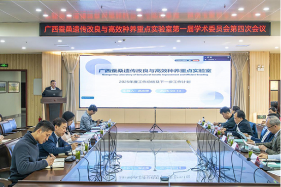 學(xué)術(shù)委員會(huì)副主任廖森泰研究員主持會(huì)議,會(huì)議聽(tīng)取并審議了重點(diǎn)實(shí)驗(yàn)室2025年度工作總結(jié)及下一年工作計(jì)劃和三個(gè)亮點(diǎn)工作匯報(bào)。學(xué)術(shù)委員會(huì)專家對(duì)實(shí)驗(yàn)室過(guò)去一年的建設(shè)成效給予高度肯定,認(rèn)為實(shí)驗(yàn)室在科研攻關(guān)、成果產(chǎn)出、產(chǎn)業(yè)服務(wù)等方面取得顯著進(jìn)展:主持實(shí)施了多項(xiàng)國(guó)家級(jí)重要課題項(xiàng)目、“桂蠶8號(hào)”入選2025年農(nóng)業(yè)農(nóng)村部主推品種、“瑤蠶”遺傳資源通過(guò)國(guó)家級(jí)認(rèn)定、育成蠶桑新品種12個(gè)、獲得省部級(jí)獎(jiǎng)勵(lì)2項(xiàng)、發(fā)表SCI論文8篇、獲授權(quán)發(fā)明專利12項(xiàng)等重要成果,得到業(yè)界一致肯定和廣泛認(rèn)同。