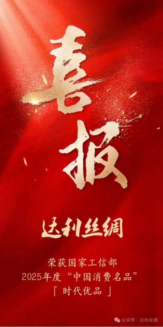 喜報傳來,榮耀加冕!工業(yè)和信息化部正式公布2025年度中國消費名品名單,與此同時,浙江省經(jīng)信廳也公示了首批浙江消費名品名單。達利絲綢憑借深厚的品牌底蘊、卓越的產(chǎn)品實力以及突出的行業(yè)影響力,成功躋身兩大榜單,一舉斬獲國家級、省級雙重榮譽,用匠心與實力,生動詮釋了浙產(chǎn)絲綢的卓越品質(zhì)與責(zé)任擔(dān)當(dāng)。