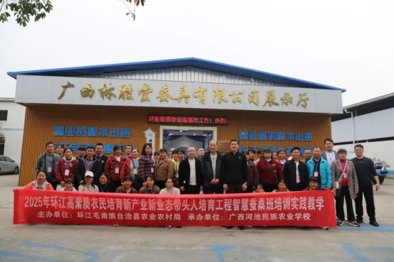 為推動(dòng)蠶桑產(chǎn)業(yè)智能化、省力化發(fā)展,助力高素質(zhì)農(nóng)民提升實(shí)操能力,3月23日下午,環(huán)江高素質(zhì)農(nóng)民培育新產(chǎn)業(yè)新業(yè)態(tài)帶頭人培育工程智慧蠶桑班學(xué)員一行,走進(jìn)廣西林勝堂蠶具有限公司開(kāi)展參觀學(xué)習(xí)活動(dòng),近距離感受智慧蠶桑設(shè)備的科技魅力。