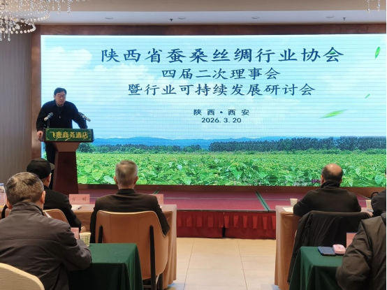 3月20日下午,陜西省蠶桑絲綢行業(yè)協(xié)會四屆二次理事會暨行業(yè)可持續(xù)發(fā)展研討會在西安市召開。