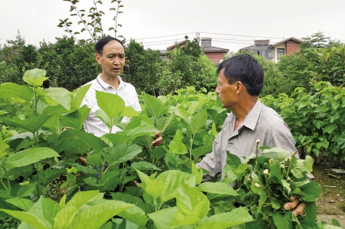 7月4日,桐鄉(xiāng)市崇福鎮(zhèn)蠶桑技術(shù)人員進(jìn)村入戶,查看夏蠶生長情況和桑園管理工作,指導(dǎo)當(dāng)?shù)匦Q農(nóng)生產(chǎn),確保夏蠶豐收。據(jù)了解,今年崇福鎮(zhèn)共飼養(yǎng)夏蠶近1900張,占全市飼養(yǎng)量的24%。