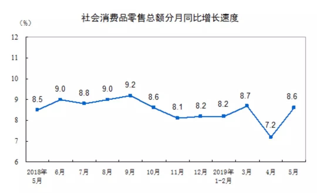社會(huì)消費(fèi)品零售總額同比增8.6%,預(yù)期8.1%,前值7.2%;
