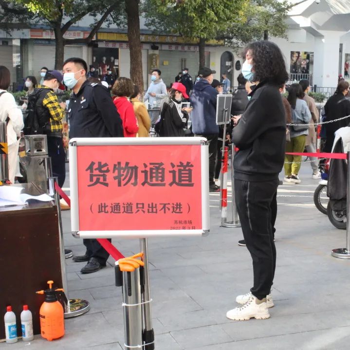 在杭州,蘇杭在內的四季青服裝批發(fā)市場齊心協力防疫,已恢復為常態(tài)化防控區(qū)域。3月11日,一大清早,服裝人早已守候在市場外門等待進場,工作人員組織引導大家有序排隊,依次入場。門口已安裝閘機入口,憑身份證核酸結果陰性和身份證進入市場。