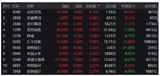 恒生科技指數(shù)(4009.13, 43.96, 1.11%)漲1.11%,眾安在線(25, 2.00, 8.70%)漲8.7%,閱文集團(tuán)(37.7, 2.60, 7.41%)漲7.4%,萬國數(shù)據(jù)漲6.8%,蔚來、比亞迪(206.2, 4.20, 2.08%)電子(22.6, 1.15, 5.36%)等漲超5%,瑞聲科技(16.9, 0.62, 3.81%)、小鵬汽車、攜程集團(tuán)等漲超3%。