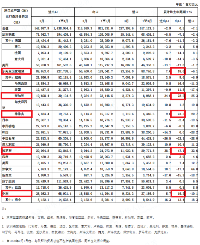 總的來(lái)說(shuō),一季度我國(guó)出口高增長(zhǎng)的支撐主要來(lái)自于東南亞、非洲、俄羅斯等發(fā)展中國(guó)家和新興市場(chǎng)國(guó)家。這一方面源自產(chǎn)業(yè)互補(bǔ)優(yōu)勢(shì)的推動(dòng)作用,另一方面則是“一帶一路”、RCEP等政策紅利持續(xù)釋放的成果。往后來(lái)看,這些地區(qū)將會(huì)是今年外貿(mào)中持續(xù)的亮點(diǎn)。也請(qǐng)絲綢相關(guān)企業(yè)注意。