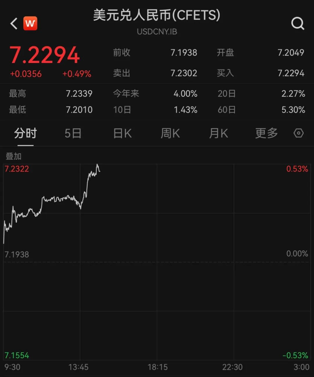 今年以來(lái),人民幣對(duì)美元即期匯率累計(jì)貶值約4%,離岸人民幣對(duì)美元匯率累計(jì)下跌約4.5%。
