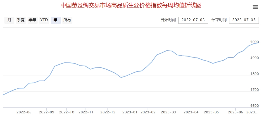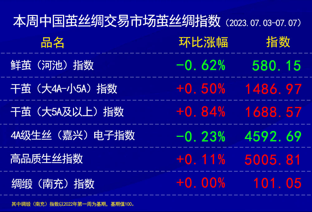 本周,從市場協(xié)作單位走貨來看,部分選擇不急著成交,部分維持上周價(jià)格繼續(xù)批量走貨,部分本周價(jià)格較前期有所提高。整體上,高品質(zhì)生絲指數(shù)微漲0.11%。