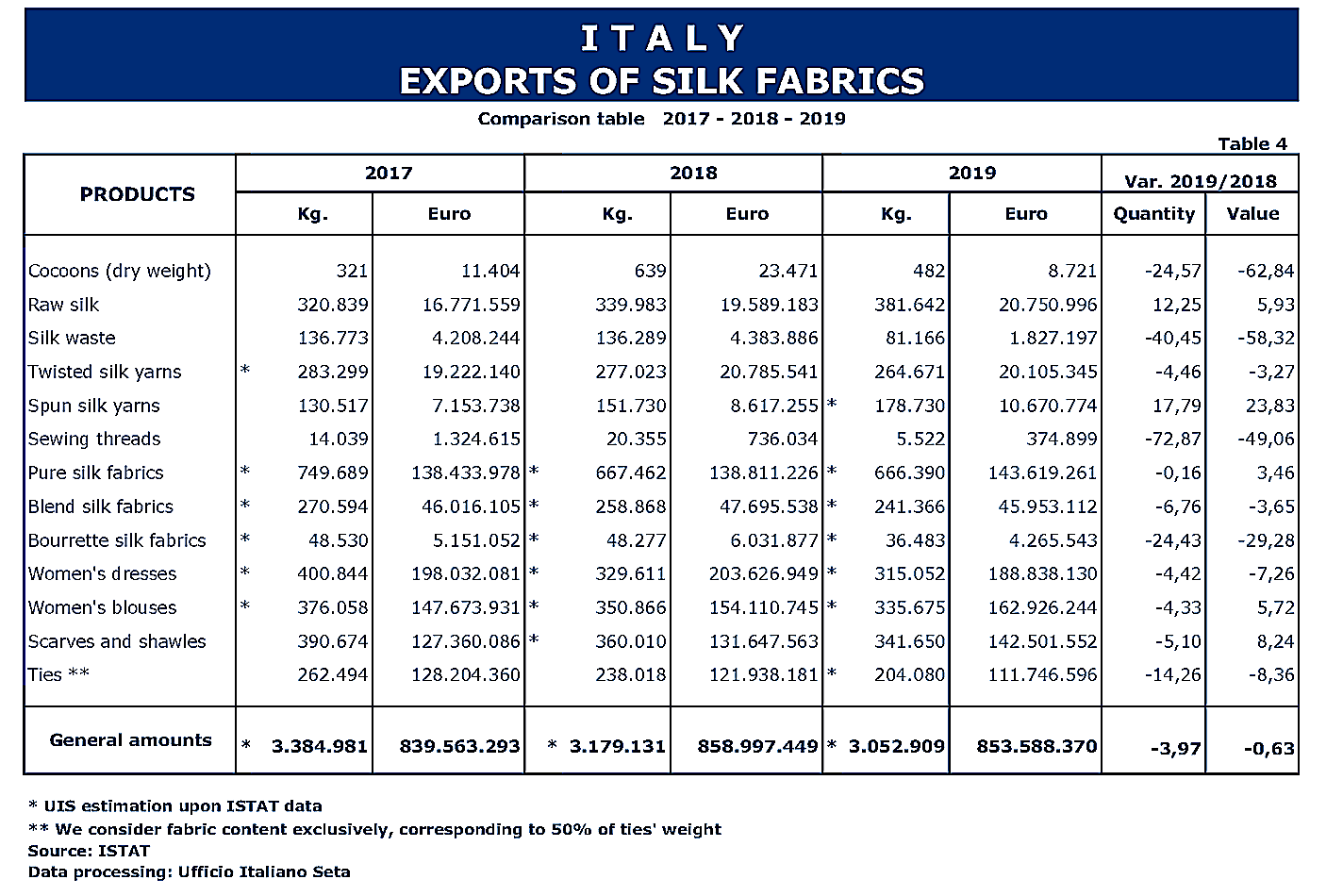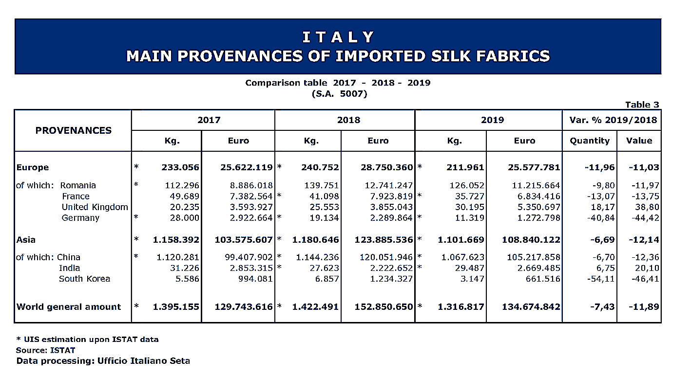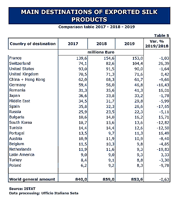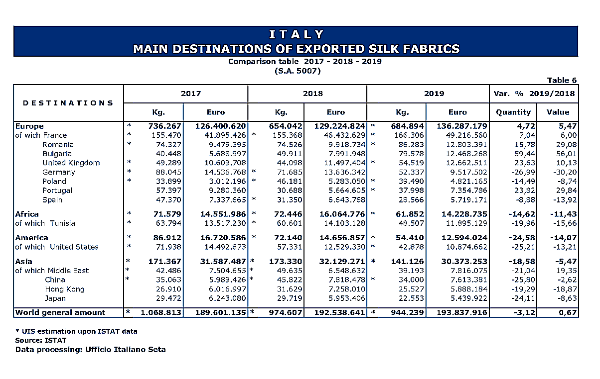 Trade Stastistics of Italian Silk Products in 2019