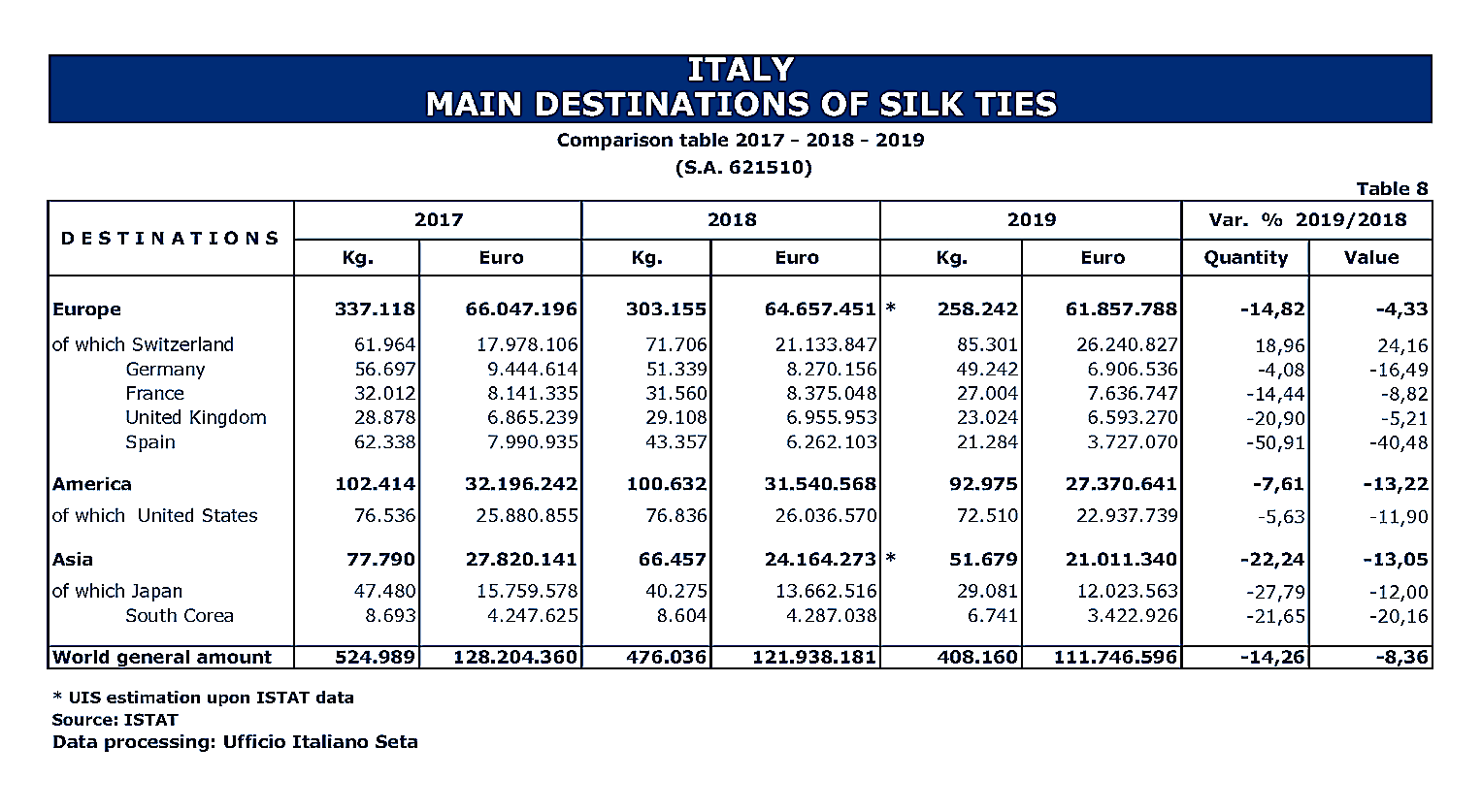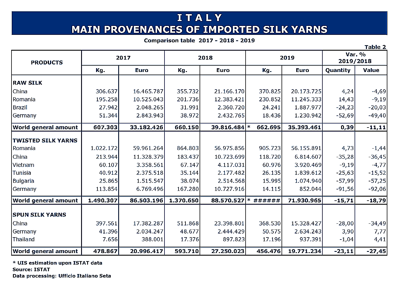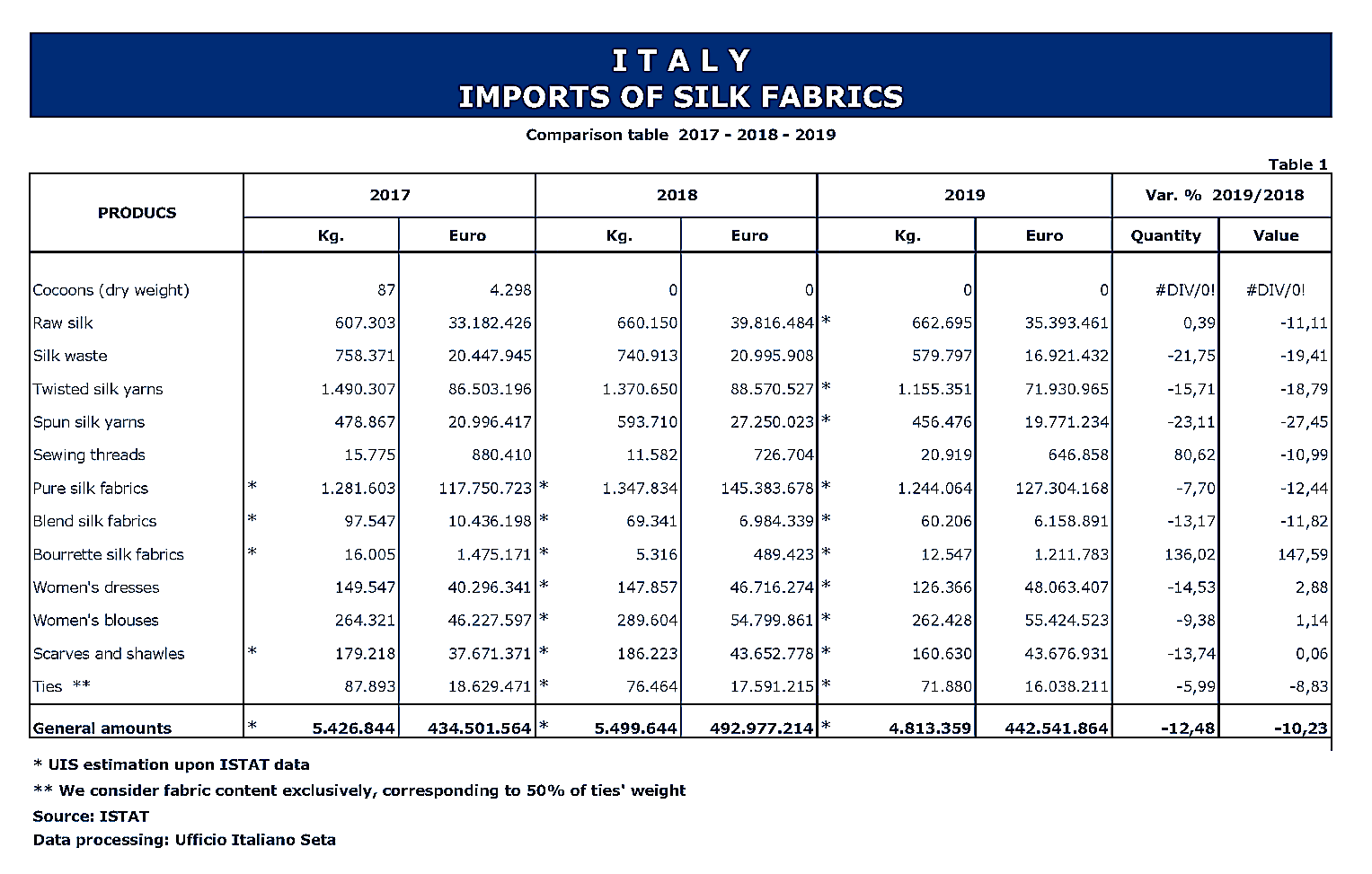 Trade Stastistics of Italian Silk Products in 2019