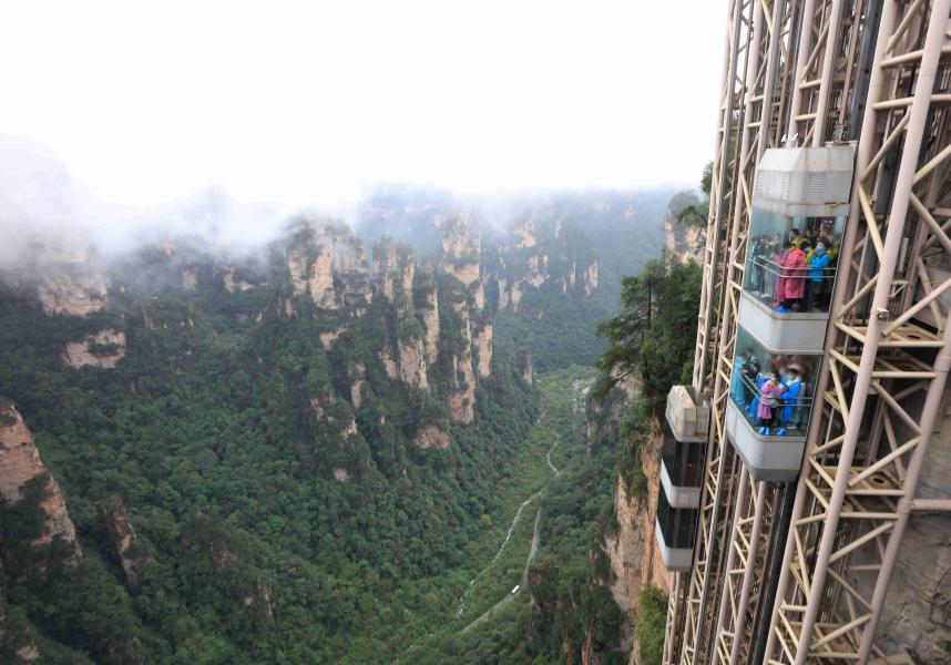 Tourists visit the Wulingyuan scenic area in Zhangjiajie, central China's Hunan Province, Oct. 3, 2020. (Photo by Wu Yongbing/Xinhua)