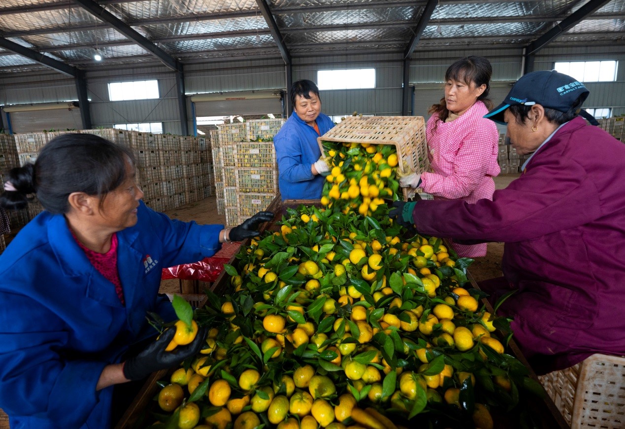 Farmers pick mandarin oranges to be exported at a plantation base in Yushui district, Xinyu, east China’s Jiangxi