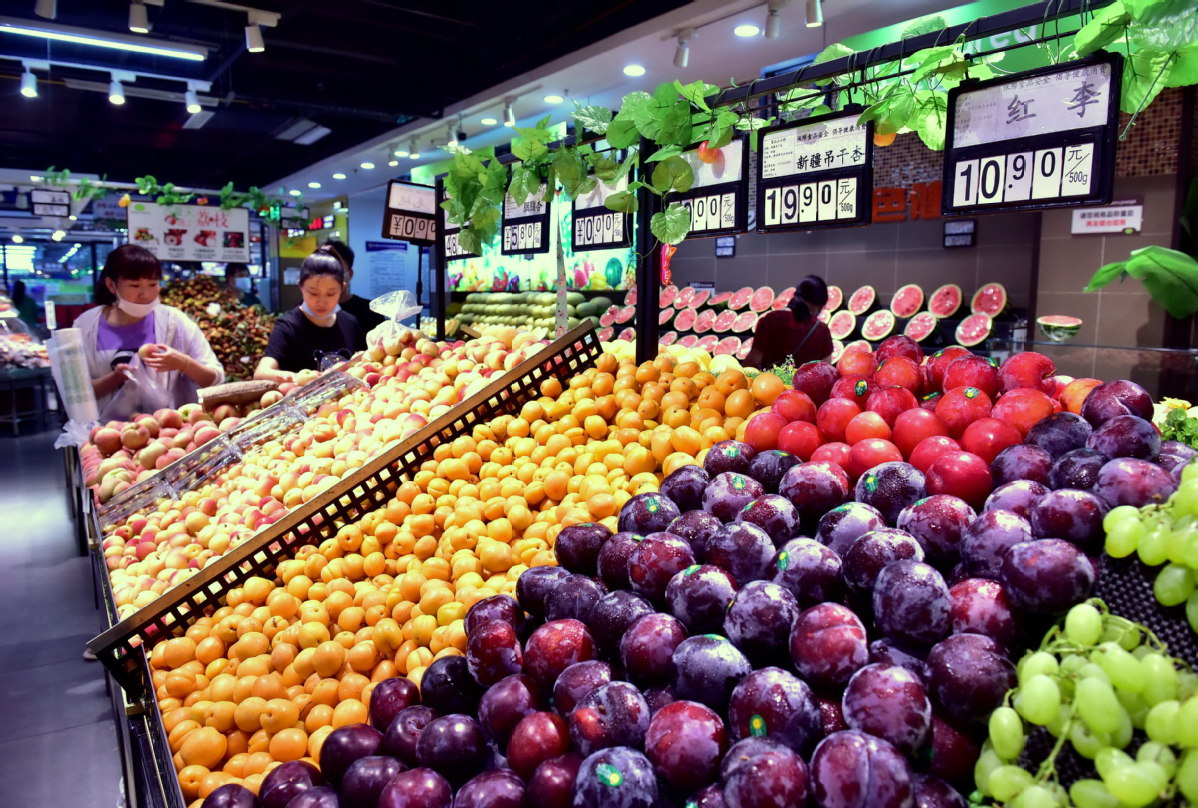 Shoppers buy fruit at a supermarket in Shijiazhuang, Hebei province. [Photo by Jia Minjie/For China Daily]