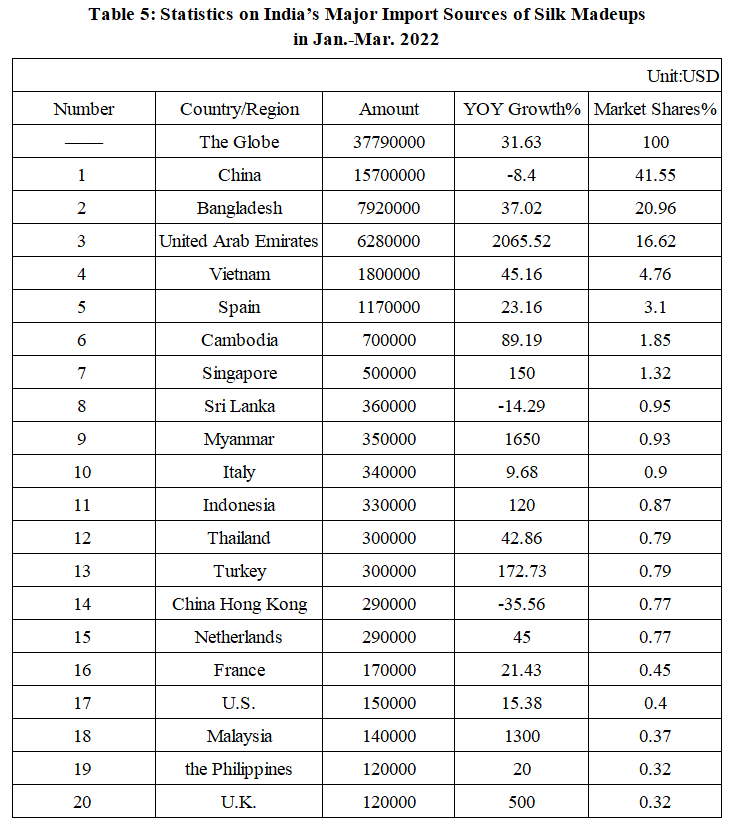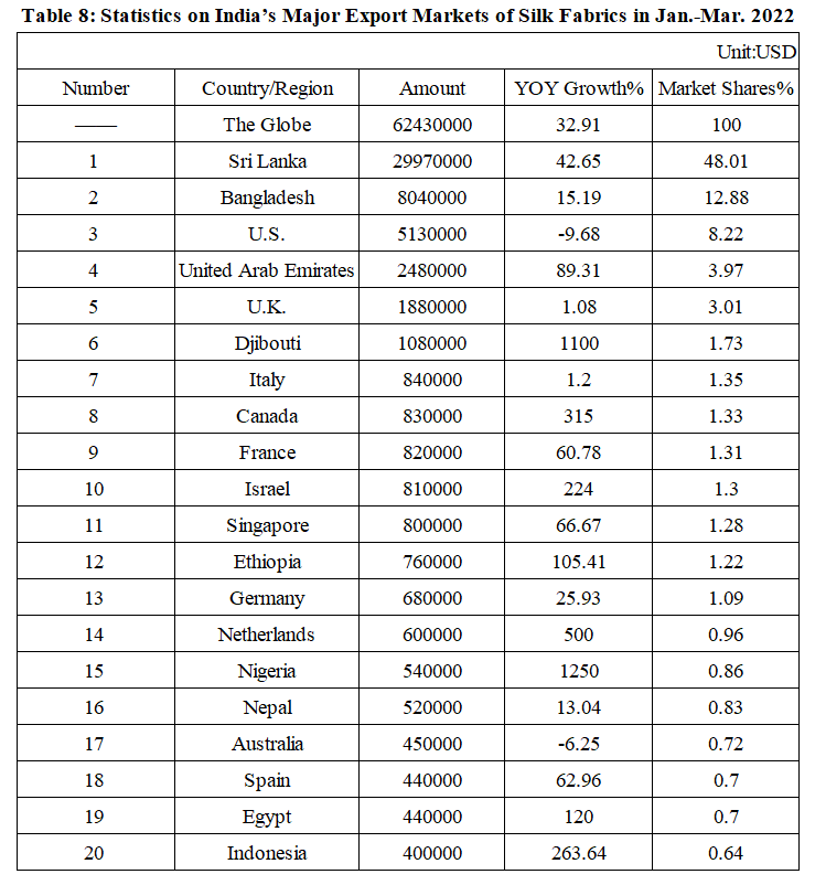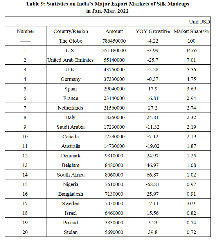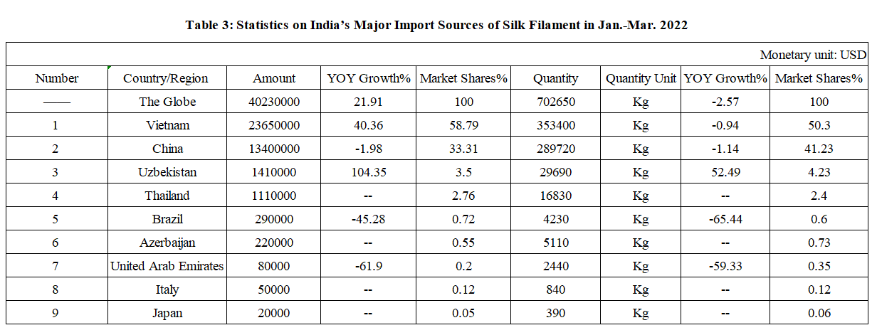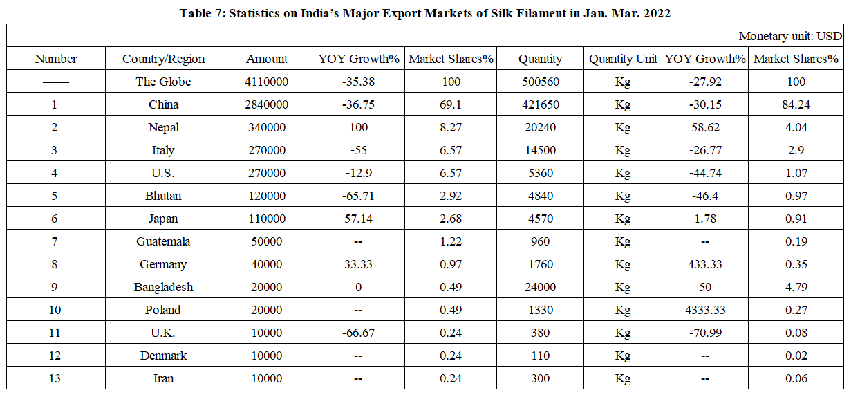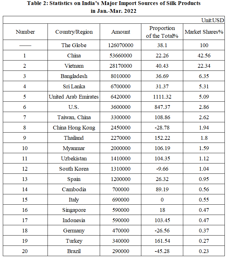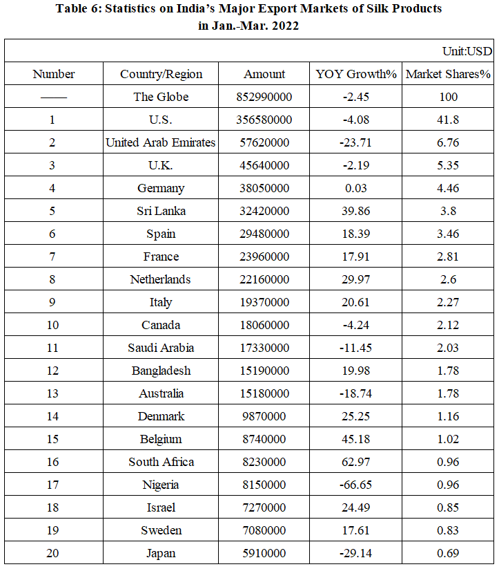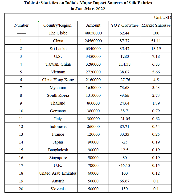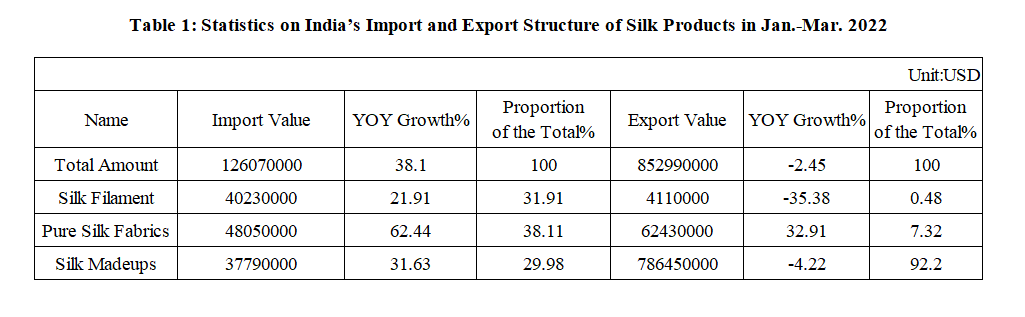 India’s Silk Product Imports and Exports in Jan.-Mar. 2022