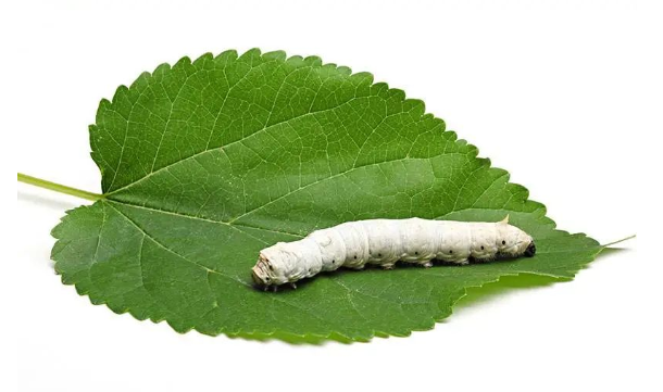 During the feeding period in commerical silk production the larvae is fed mulberry leaves (results in the finest silk) and grow very fast. They eat around 50000 times of their initial weight. In approximately 6 weeks, the larvae are 10000 times heavier than at the time of hatching, and ready to spin a silk cocoon. The silkworm needs around 3 till 8 days to spin a cocoon, thereby producing one kilometer of silk filament.