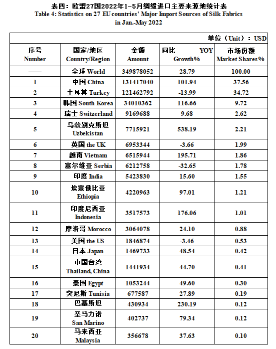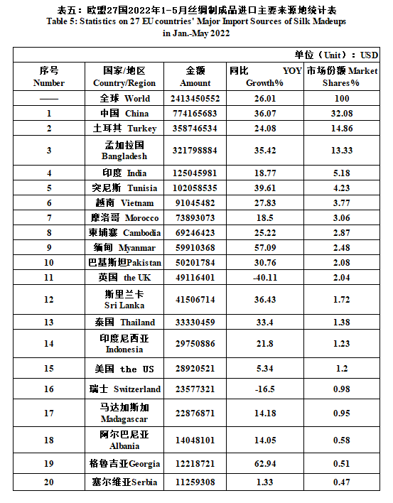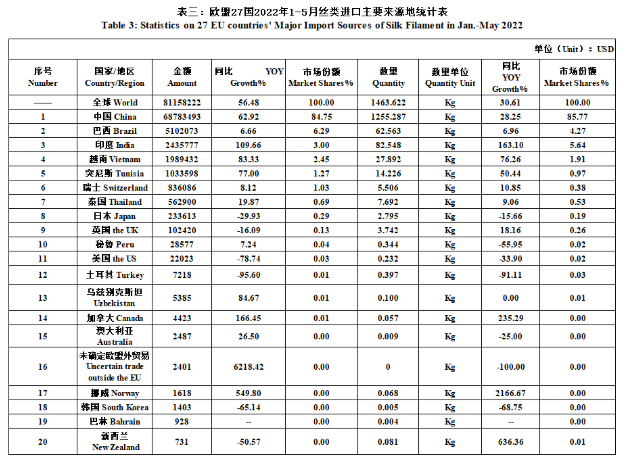 27 EU Countries’ Silk Product Imports & Exports in Jan.-May 2022