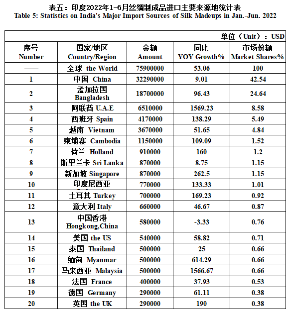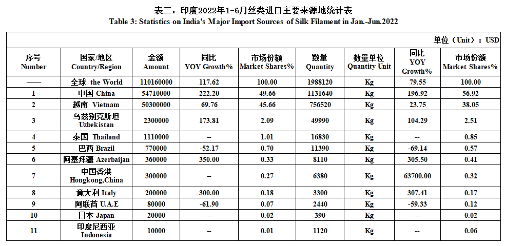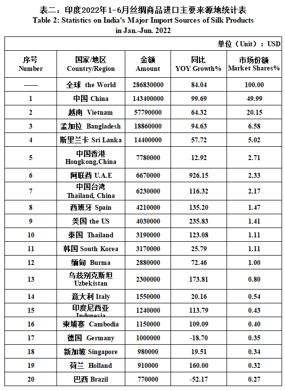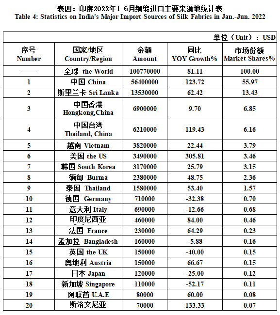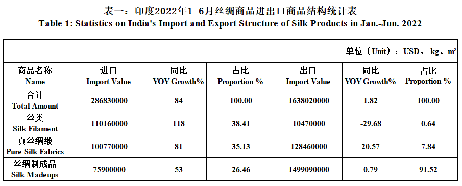 India's Silk Product Imports & Exports in Jan.-Jun. 2022