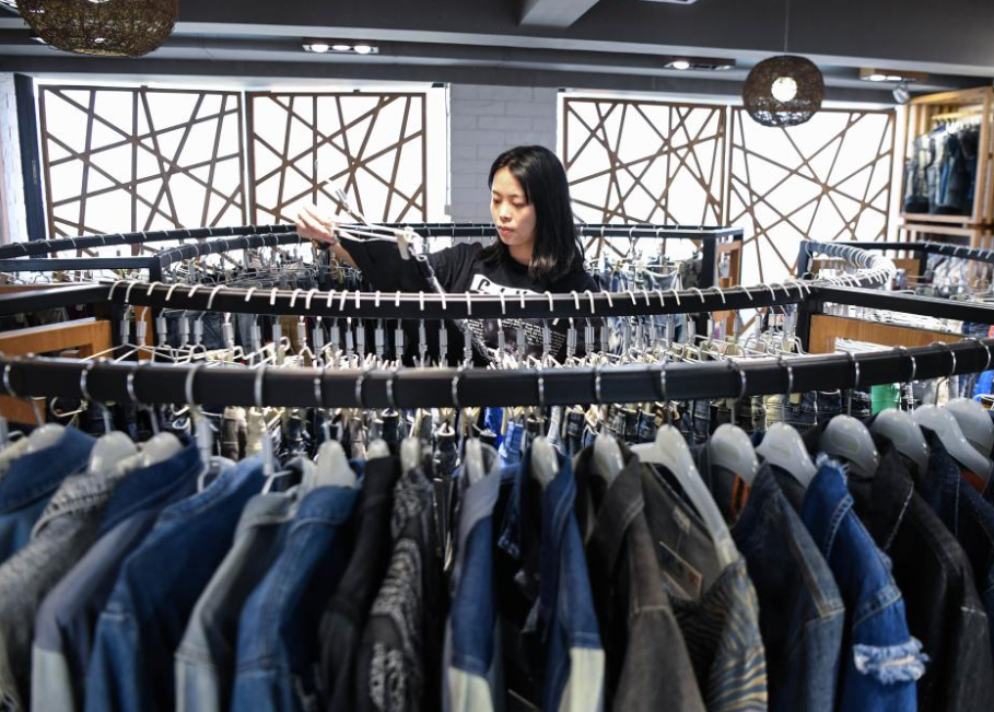 A staff member sorts clothes to be displayed online for the 132nd session of the China Import and Export Fair, also known as the Canton Fair, at Guangdong Textiles Import & Export Co., Ltd. in Guangzhou, south China's Guangdong Province, Oct. 14, 2022.