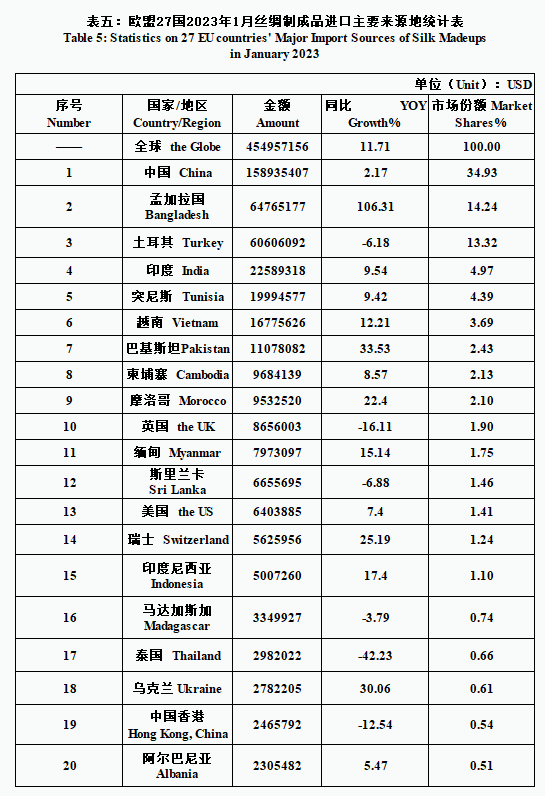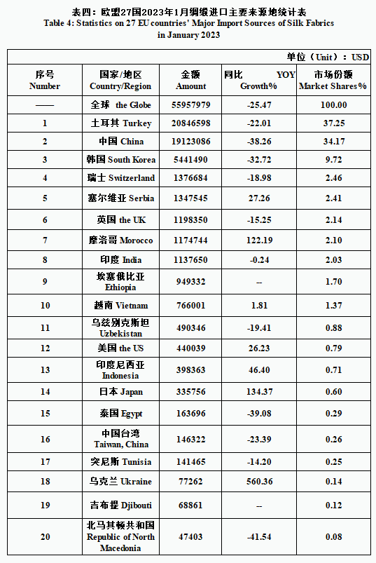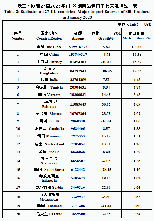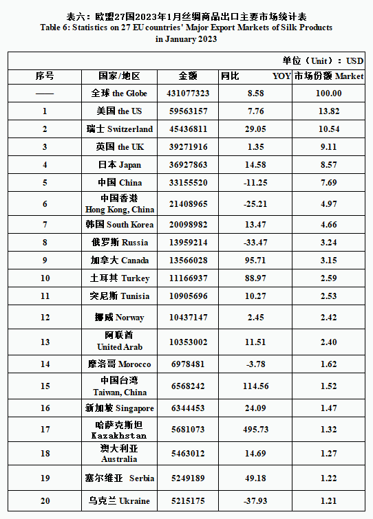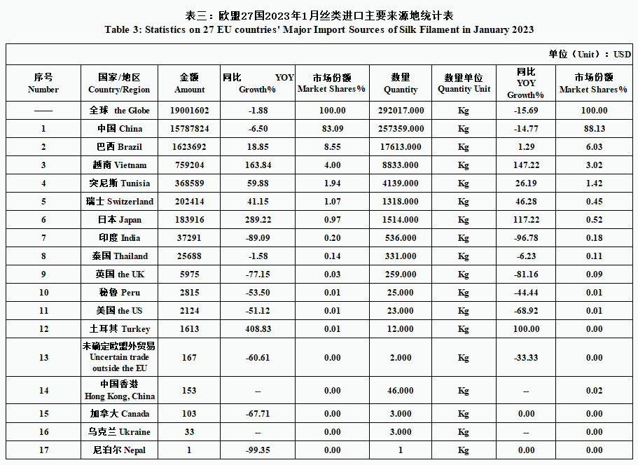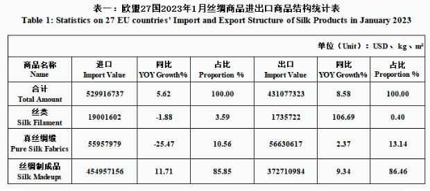 EU| 27 EU Countries’ Silk Product Imports & Exports in January 2023(by tables)