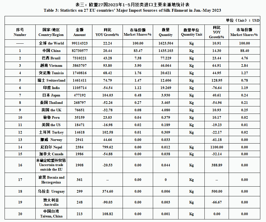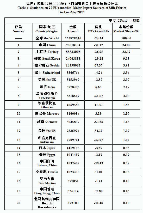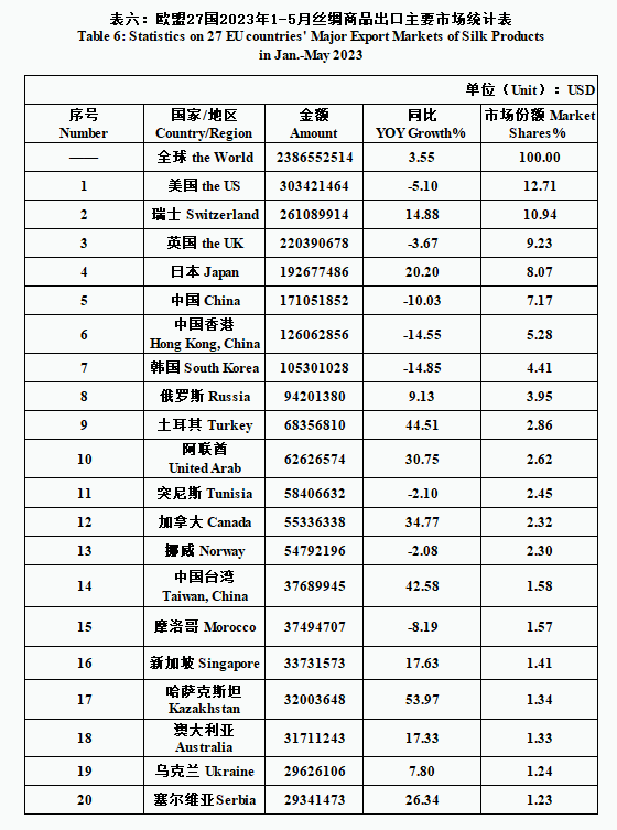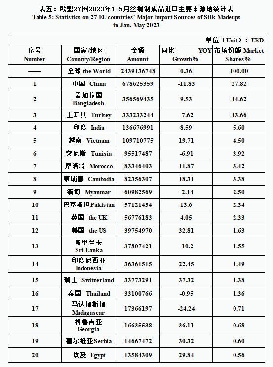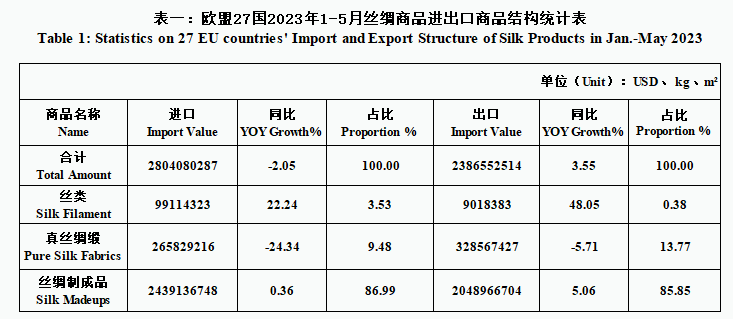 EU| 27 EU Countries’ Silk Product Imports & Exports in Jan.-May 2023