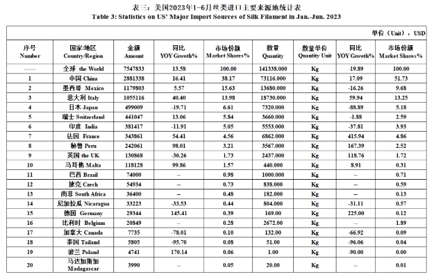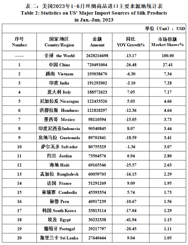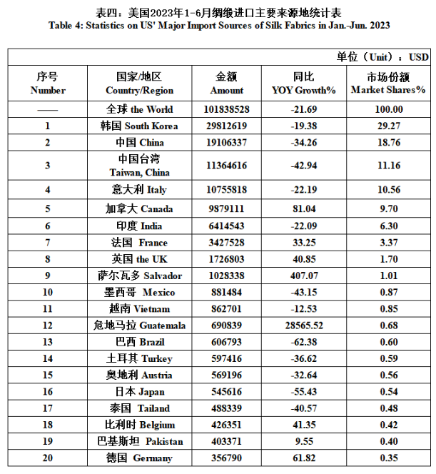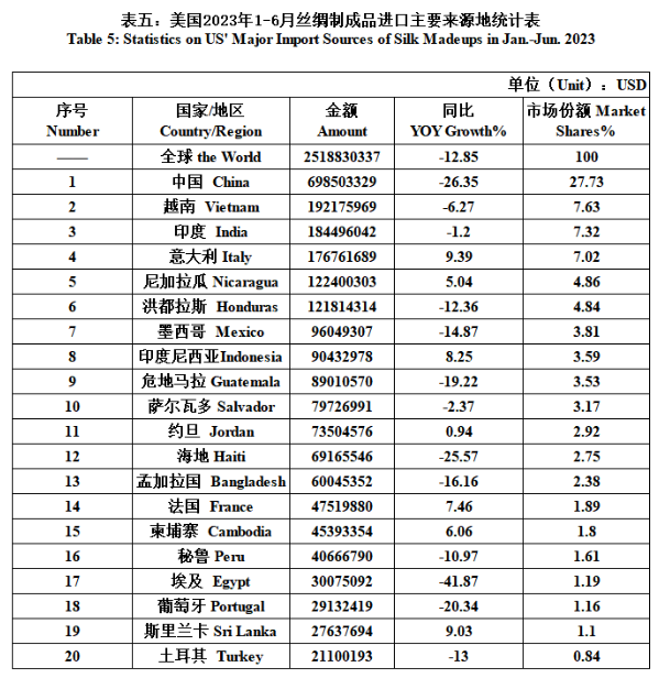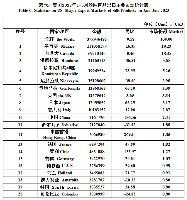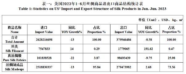 US| US’ Silk Product Imports & Exports in Jan.-Jun. 2023