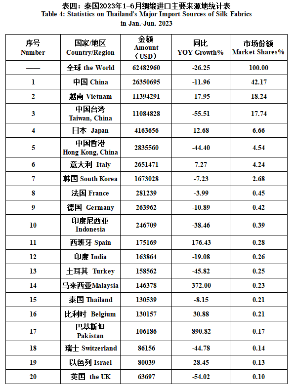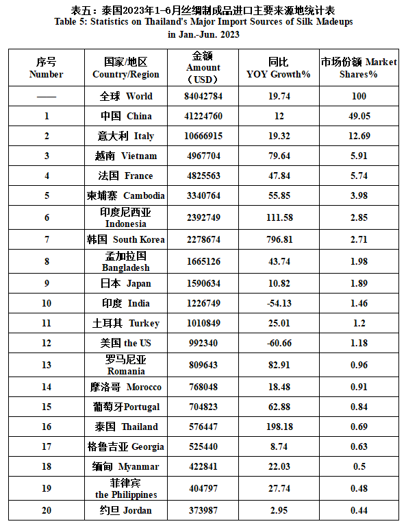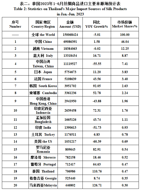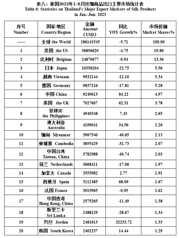 Thailand| Thailand's Silk Products Imports & Exports in Jan.-Jun. 2023