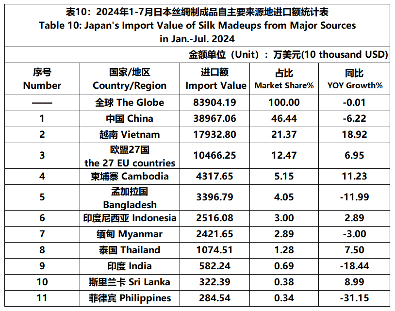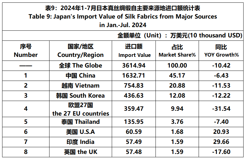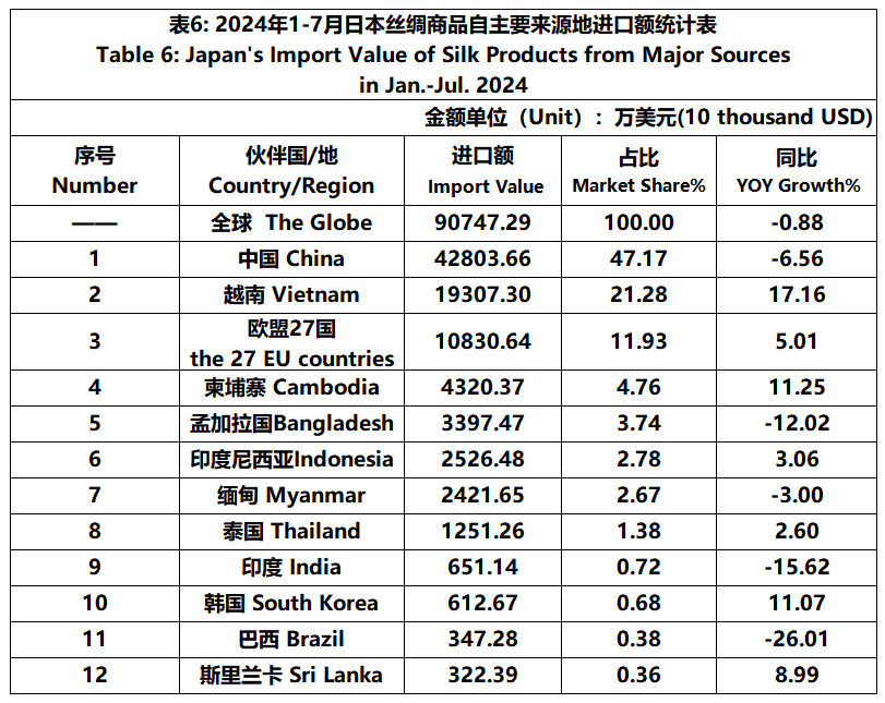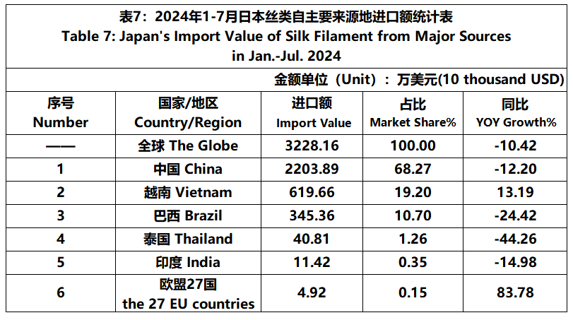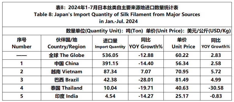 Japan | Japan's Silk Products Trade in Jan.-Jul. 2024(Imports)