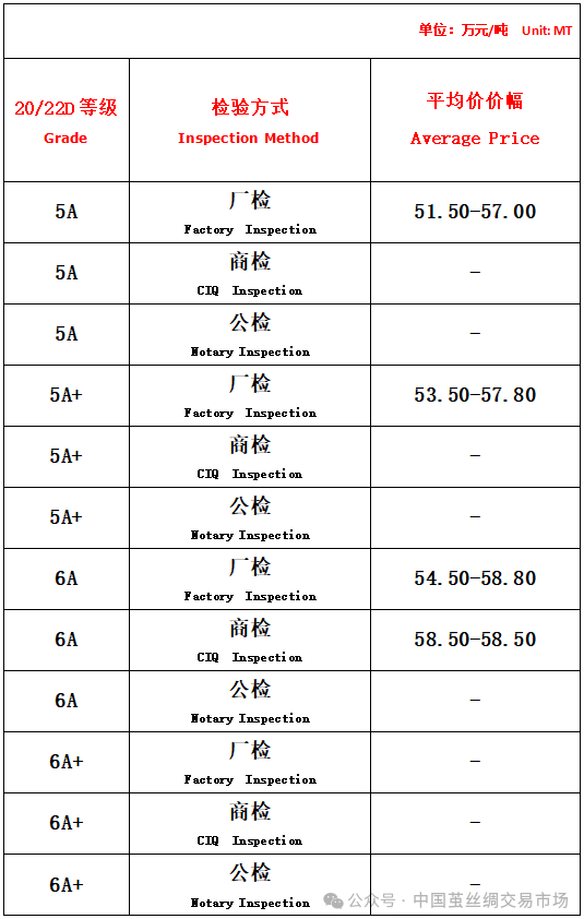 CCSE High Quality Raw Silk Trading Prices(20250414-20250418)