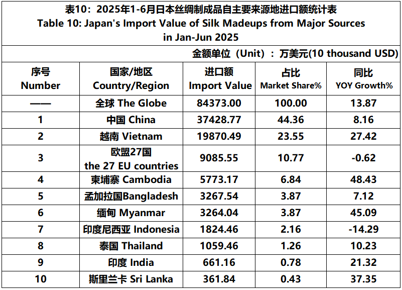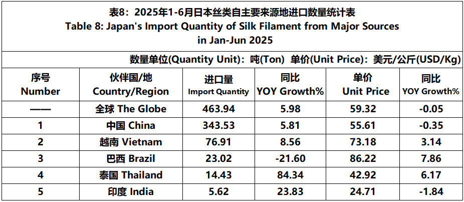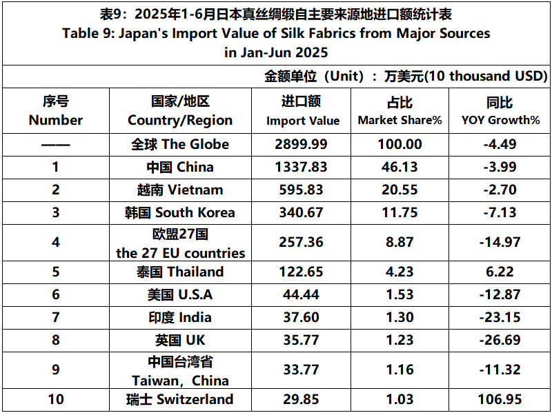 According to JCCI, from January to June 2025, the total foreign trade value of pure silk products was 978 million US dollars, a year-on-year increase of 12.26%. Among them, the export value was 77.4422 million US dollars, a year-on-year increase of 5.26%.