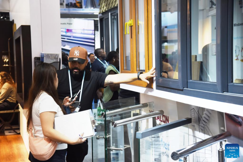 People view construction supplies at the second phase of the 138th edition of the Canton Fair in Guangzhou, south China's Guangdong Province, Oct. 27, 2025. The second phase of the 138th edition of the Canton Fair, showcasing household goods, gifts, decorations, building materials, and furniture, closed here on Monday.