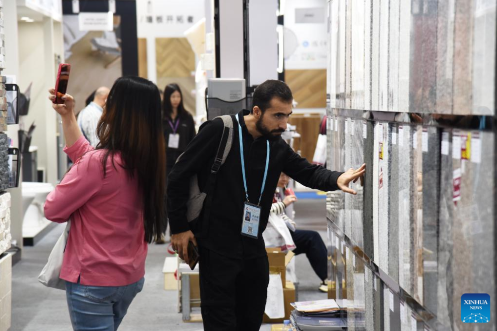People view building materials at the second phase of the 138th edition of the Canton Fair in Guangzhou, south China's Guangdong Province, Oct. 27, 2025. The second phase of the 138th edition of the Canton Fair, showcasing household goods, gifts, decorations, building materials, and furniture, closed here on Monday.