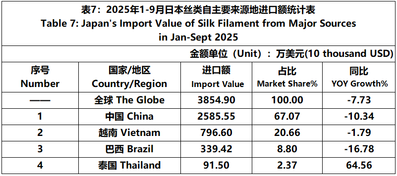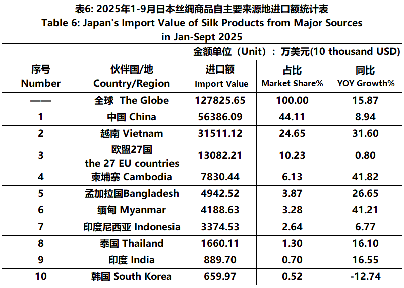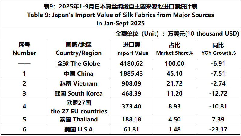 According to JCCI, from January to September 2025, the total foreign trade value of pure silk products was 1392 million US dollars, a year-on-year increase of 14.52%. Among them, the export value was 114 million US dollars, a year-on-year increase of 1.25%.