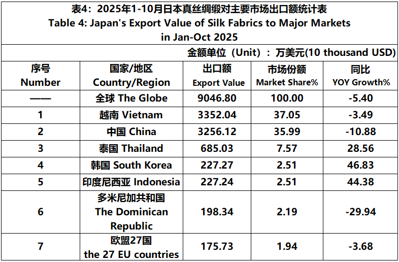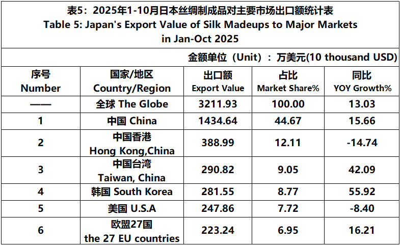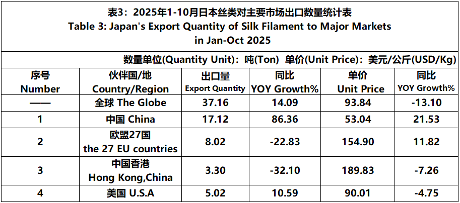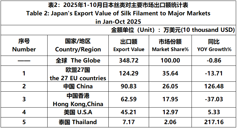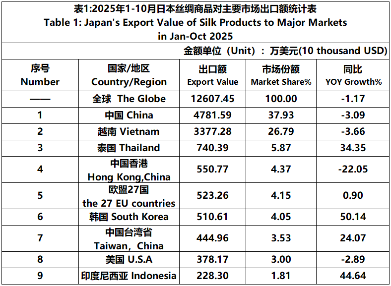 According to JCCI, from January to October 2025, the total foreign trade value of pure silk products was 1530 million US dollars, a year-on-year increase of 14.93%. Among them, the import value was 1404 million US dollars, a year-on-year increase of 16.63%.