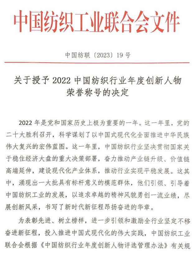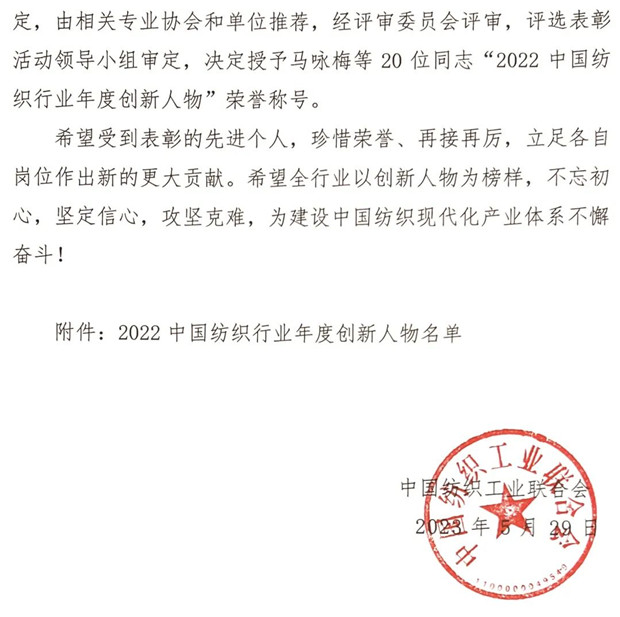 2022中國紡織行業(yè)年度創(chuàng)新人物隆重揭曉