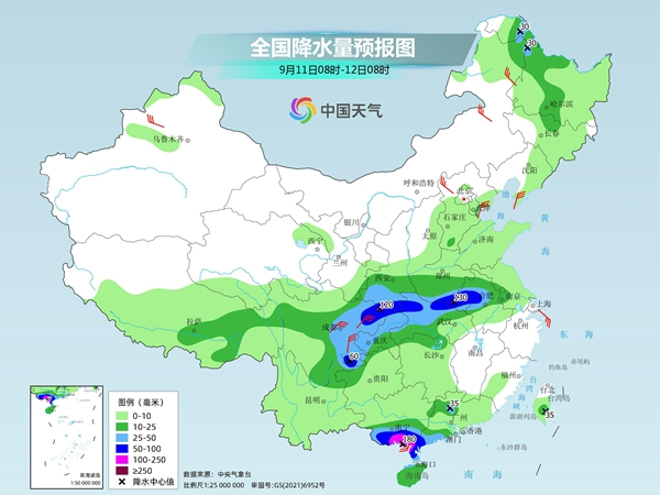 本周伊始,我國(guó)南方地區(qū)強(qiáng)降雨依然頻繁?!昂?睔堄鄿u旋的中心目前經(jīng)進(jìn)入廣西境內(nèi),今天(9月11日),廣西東南部沿海以及廣東西南部部分地區(qū)將會(huì)出現(xiàn)大暴雨;另一片強(qiáng)降雨區(qū)域則集中在華西地區(qū),昨天四川盆地西部和北部等地雨勢(shì)已較明顯,今天隨著冷空氣南下,降雨還將進(jìn)一步增強(qiáng),范圍也會(huì)迅速東擴(kuò)至重慶、陜西等地。