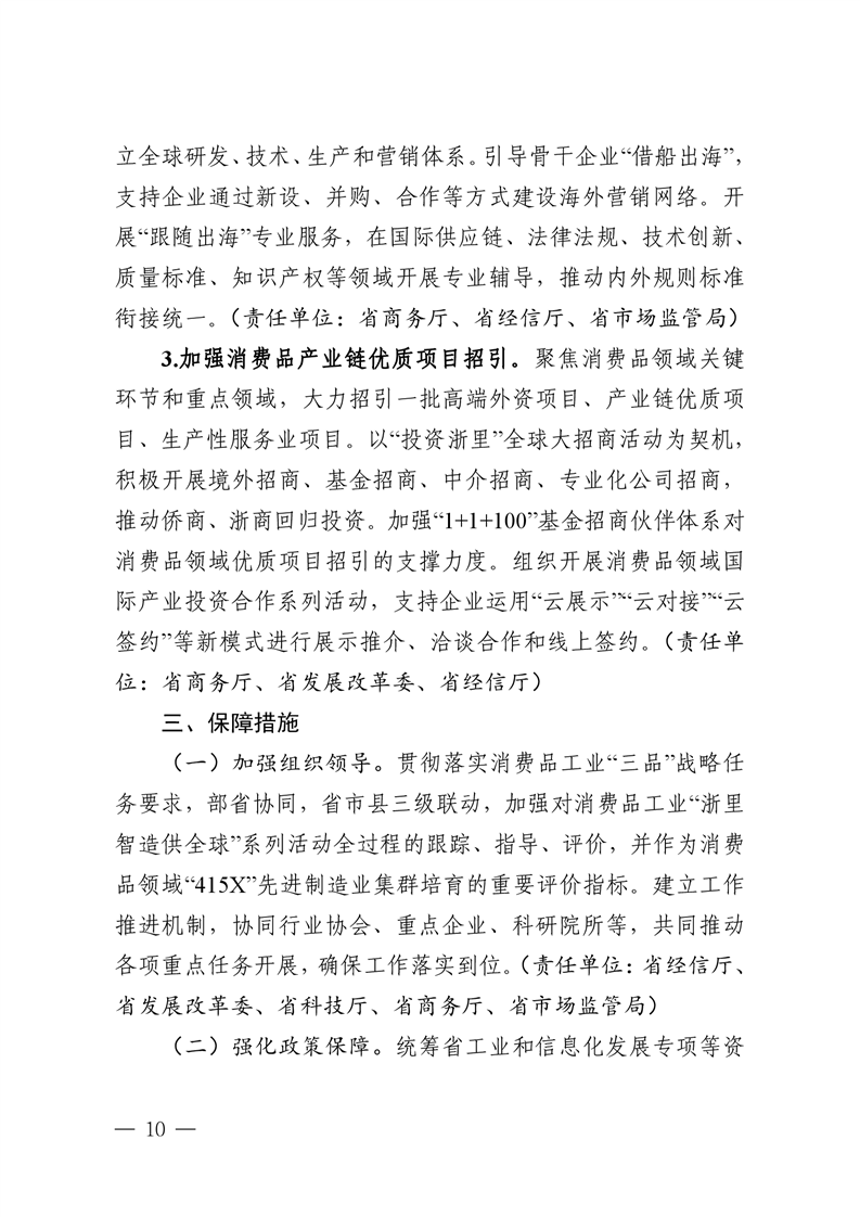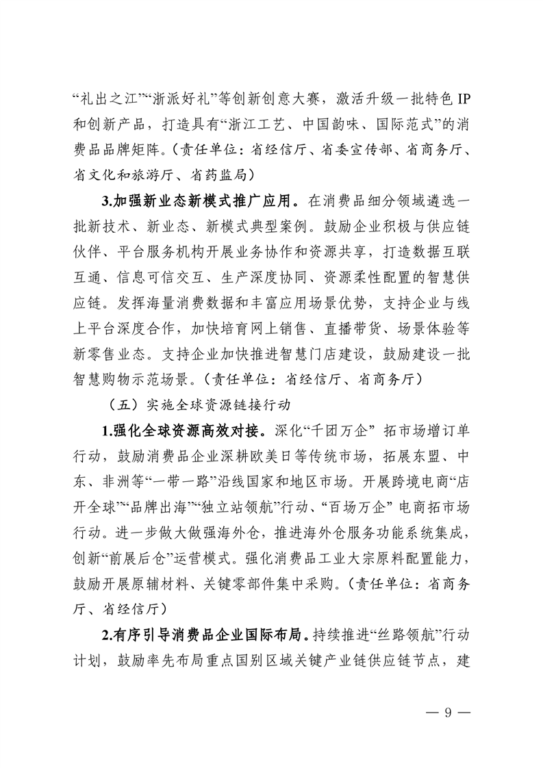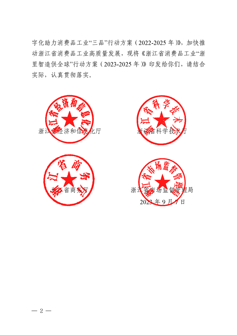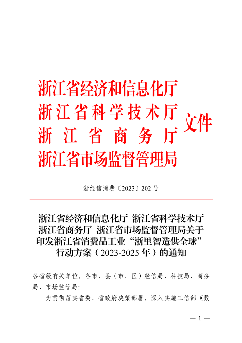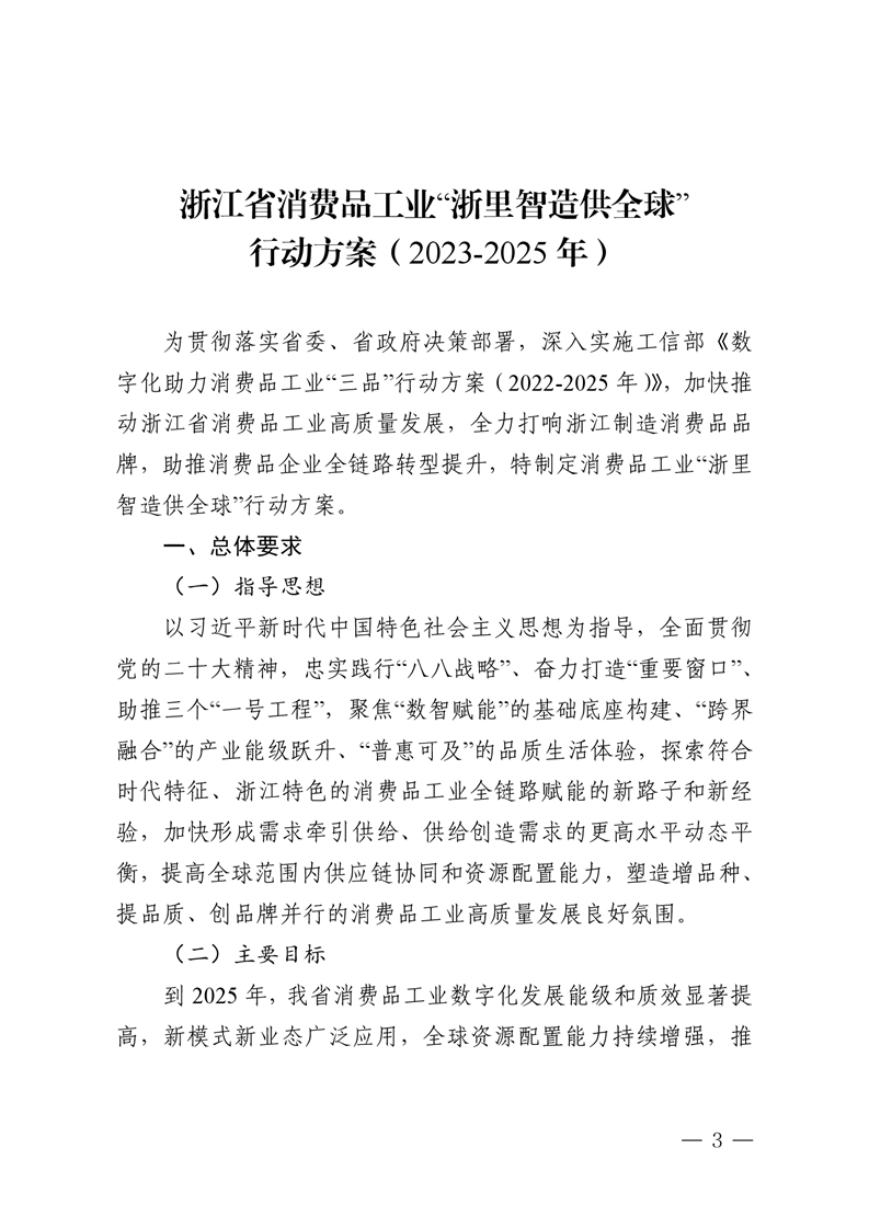 浙江省消費品工業(yè)“浙里智造供全球” 行動方案(2023-2025 年)