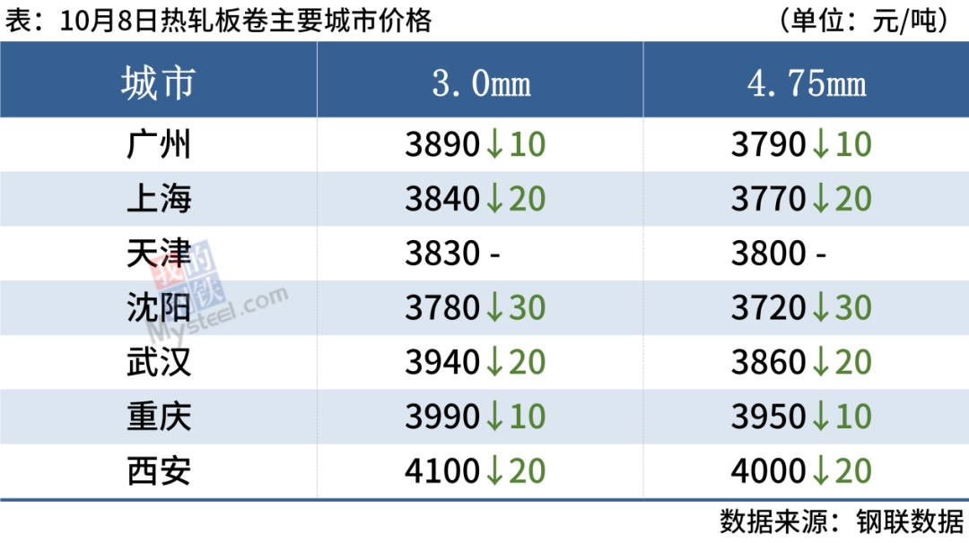 熱軋板卷:10月8日,全國24個主要城市4.75mm熱軋板卷均價3892元/噸,較上個交易日下跌12元/噸。熱卷(3754, -44.00, -1.16%)市場價格變化不大,整體庫存總量進(jìn)一步回升,同時成交相對一般,并無節(jié)后好轉(zhuǎn)得表現(xiàn)。長流程鋼廠以消耗庫存為主,獨(dú)立電爐企業(yè)節(jié)前已經(jīng)備貨完成,節(jié)日期間采購積極性不高。下游需求節(jié)中補(bǔ)庫情緒不佳,鋼廠發(fā)貨加速,投機(jī)需求尚未啟動,累庫或?qū)⒊掷m(xù),預(yù)計(jì)9日全國熱軋板卷價格或?qū)②吶踹\(yùn)行。