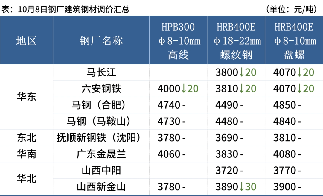 10月8日,3家鋼廠下調(diào)建筑鋼材出廠價20-30元/噸。
