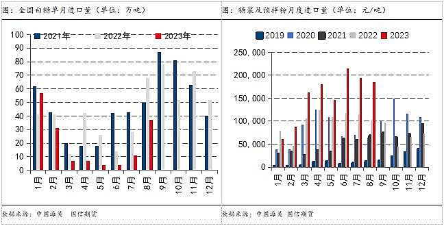 糖漿以及預(yù)拌粉的進(jìn)口持續(xù)維持在高位。8月糖漿及預(yù)拌粉進(jìn)口量為18.4萬噸,同比增加8.09萬噸。分項來看,糖漿進(jìn)口量為12.77萬噸,預(yù)拌粉進(jìn)口量為5.37萬噸。2022/23榨季共進(jìn)口141.02萬噸,同比增加42.72萬噸。