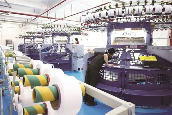福建省德奧針織股份有限公司車間內(nèi),工人正有序生產(chǎn)