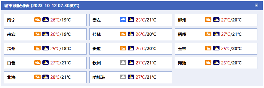廣西:全區(qū)多云為主氣溫略升 最高氣溫仍在30℃以下