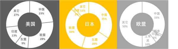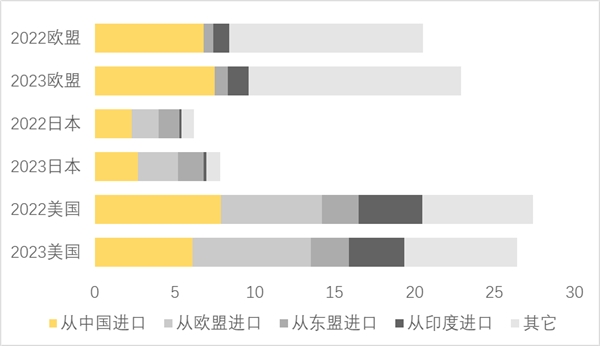 注:美國、日本為1~8月數(shù)據(jù),歐盟為1~6月數(shù)據(jù)