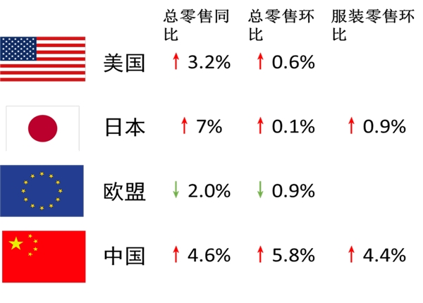 主要毛紡消費(fèi)市場(chǎng)8月零售增長情況